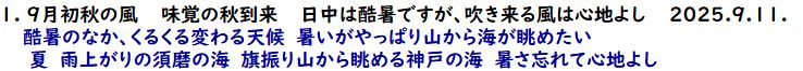 ■ 初秋の風 味覚の秋到来 神戸便りtop page |